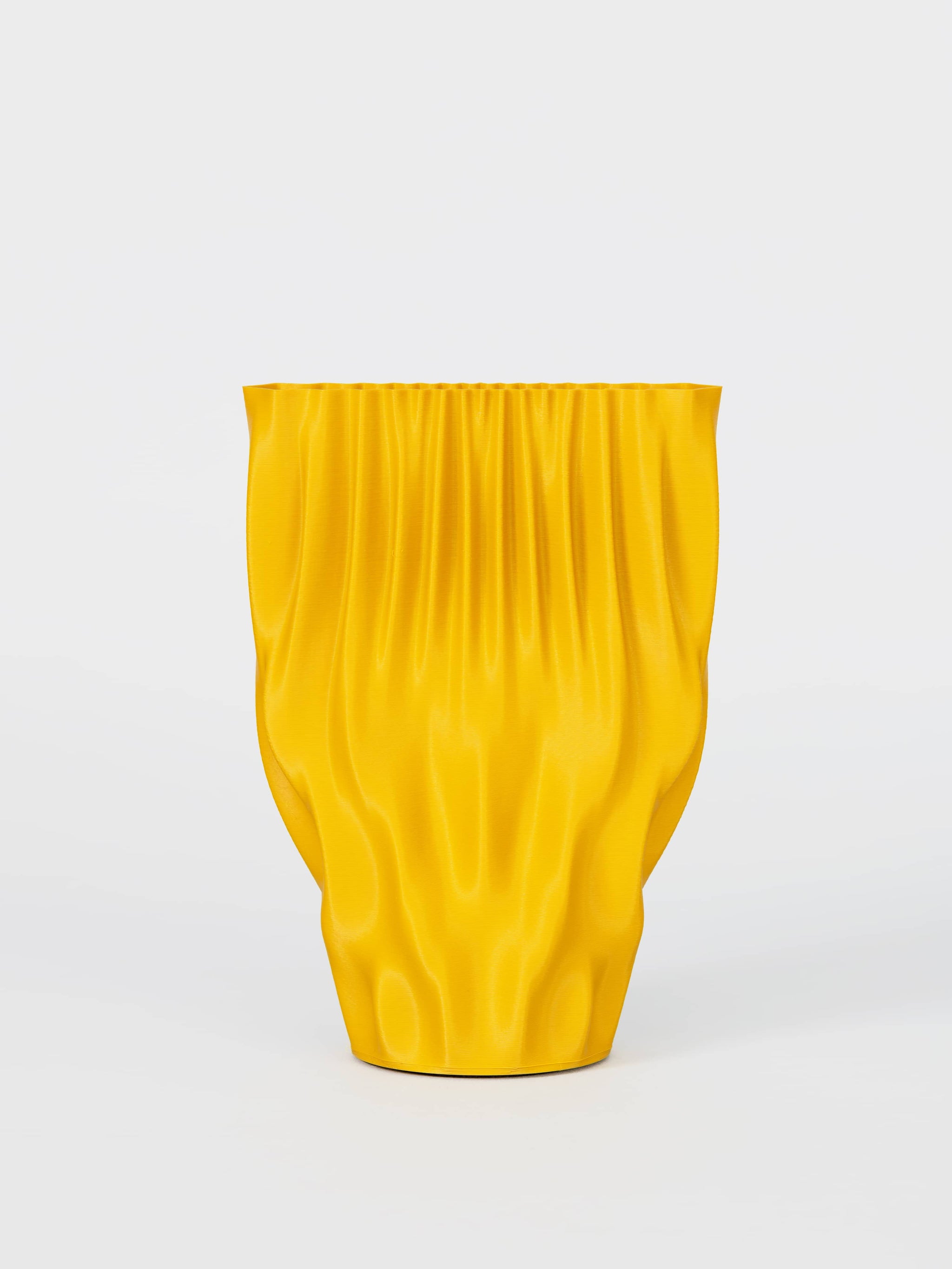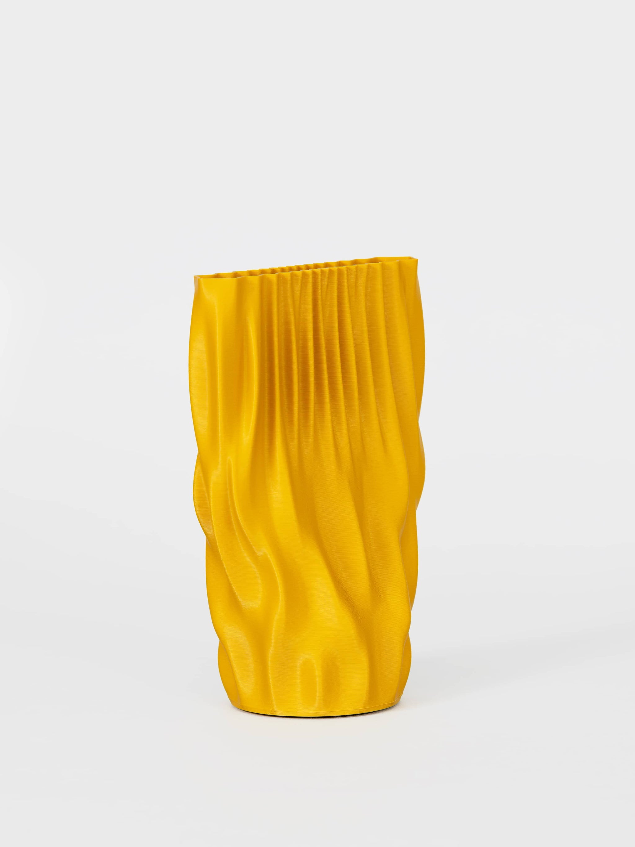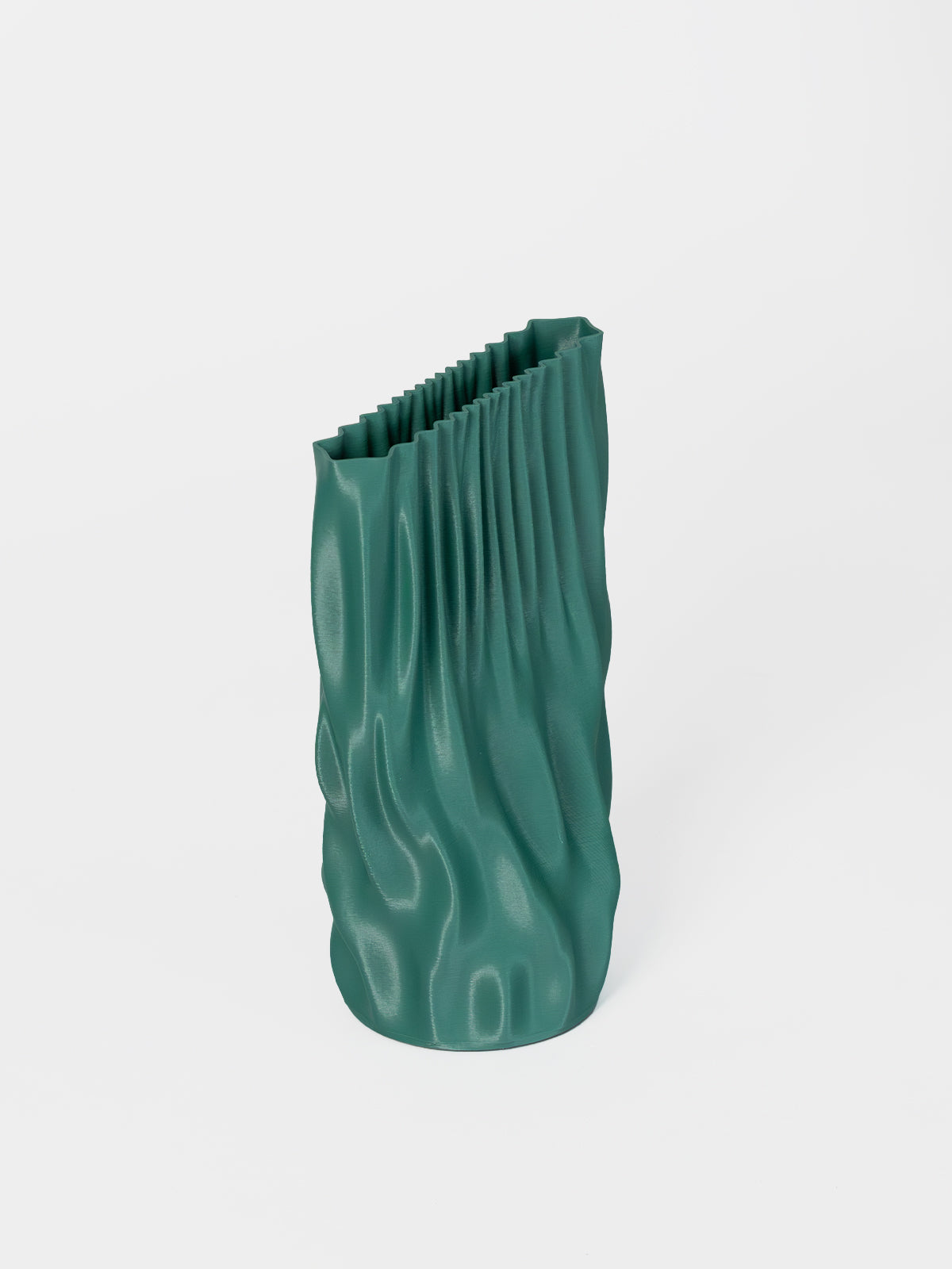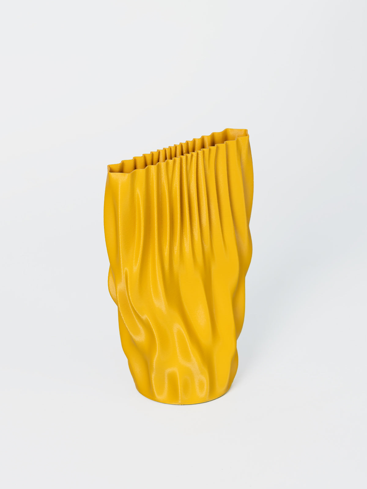 The Fmaj7 Vase features a taller, more fluid silhouette, with elongated vertical waves that create a sense of movement and lightness. Its form feels open and dynamic, allowing the surface geometry to shift subtly as it’s viewed from different angles.